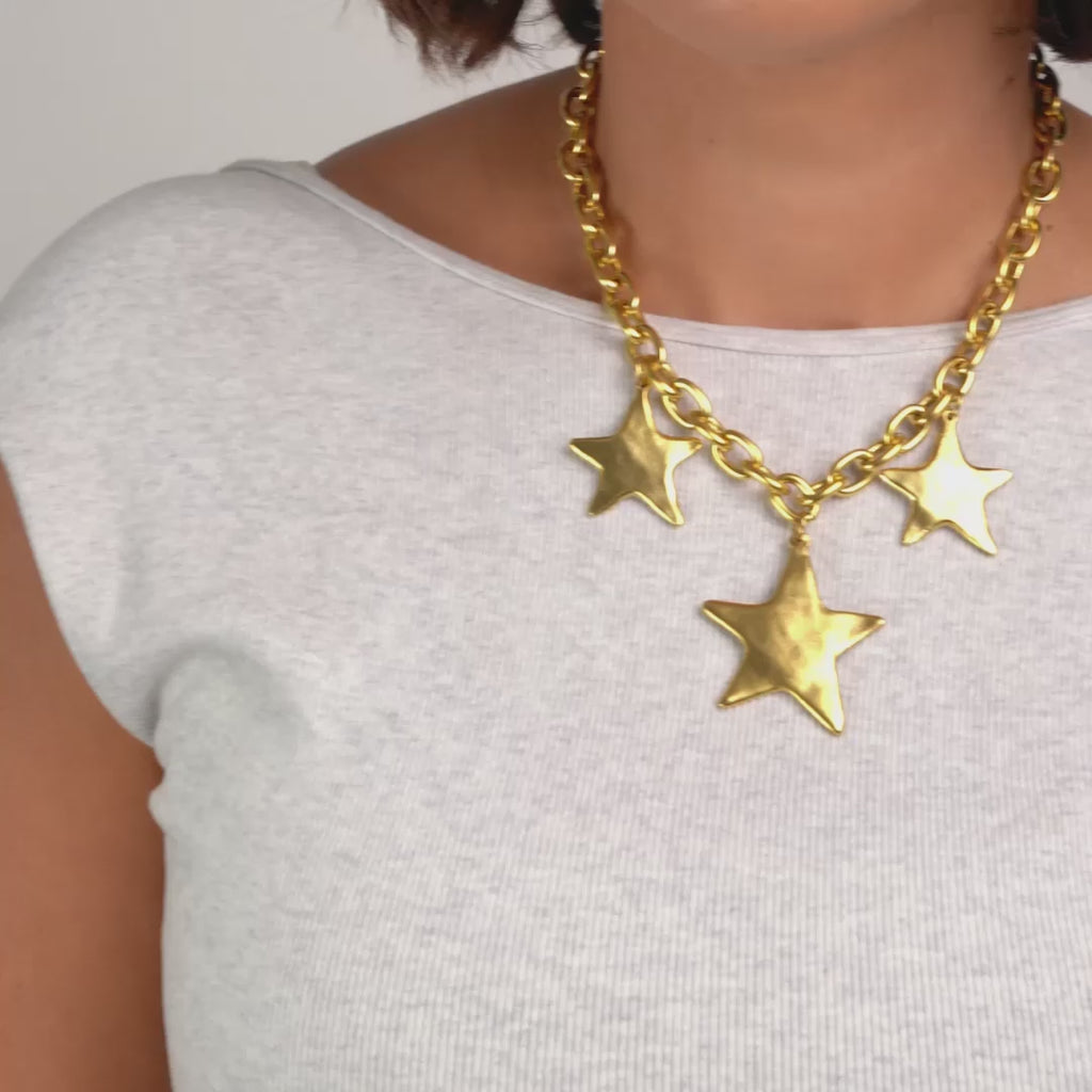 The 3 Star Shine Necklace brings all the bold energy of our iconic Star Shine look, times three. Featuring a thick gold-plated link chain and three statement star pendants, this piece is all about strong, radiant styling.