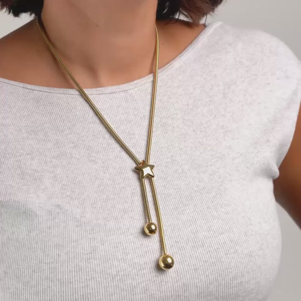 A favorite for a reason. The Maven Star Bolo Necklace pairs a smooth snake chain with a puffy star charm for instant, effortless sparkle. Easy to layer or perfect solo.